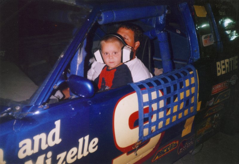 Brad and Tanner sit in his #94 ride for